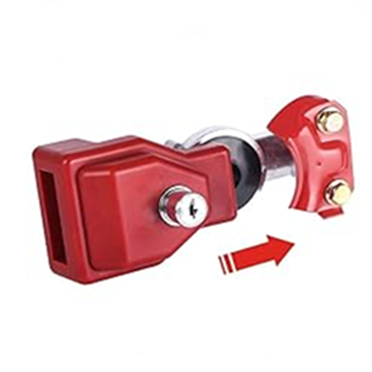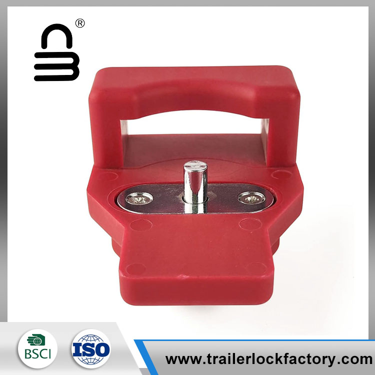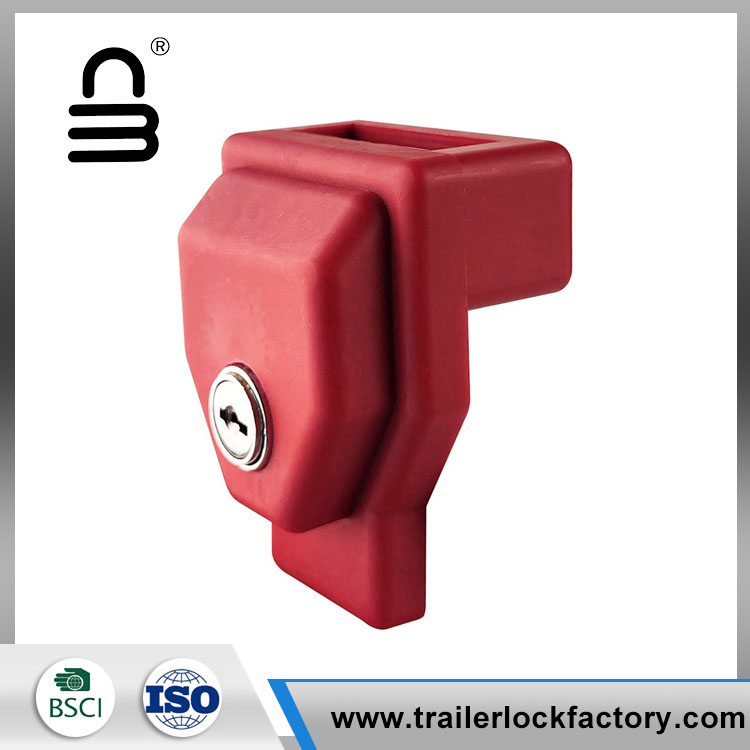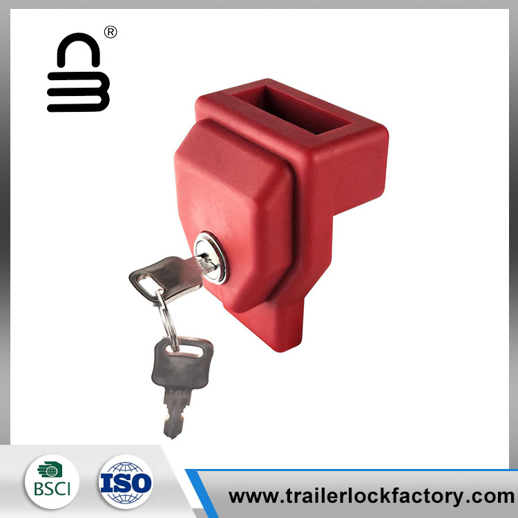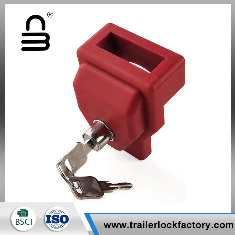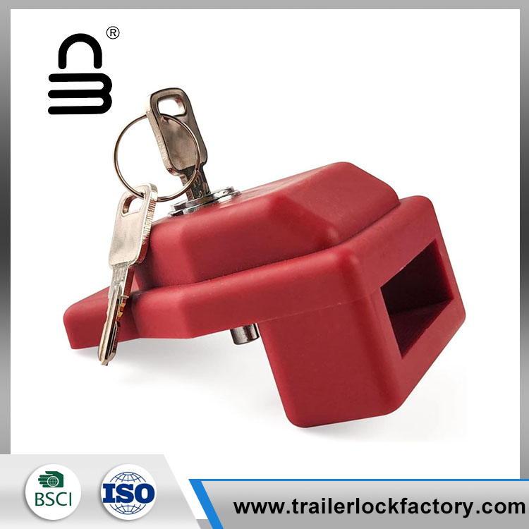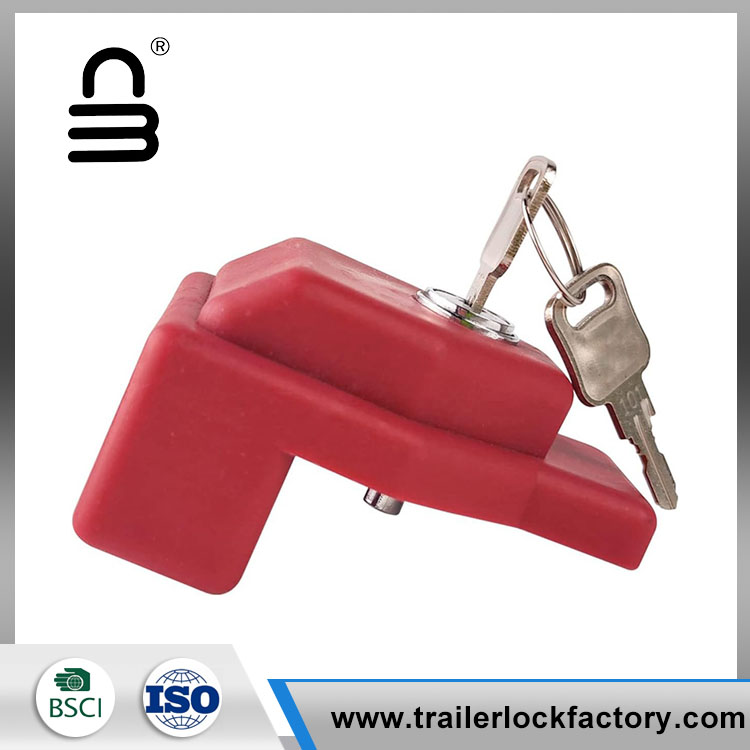 Il dispositivo di blocco del rimorchio Glad Hand è in plastica rossa visibile con serratura a chiave incorporata (chiave uguale).