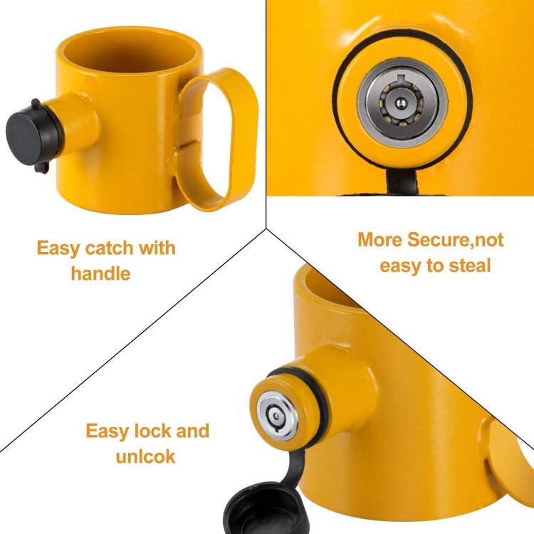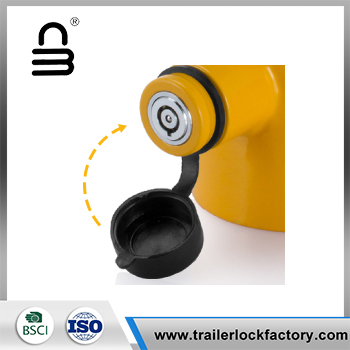Questo blocco del perno del re trailer è realizzato in acciaio in lega, serratura abbastanza forte per essere resistente alle intemperie, difficile da rompere, ha un forte deterrente. Il polsino in acciaio n. 45 pesante e cilindro di bloccaggio in rame aggiungono più difficoltà per le esercitazioni di furto e aumentano la durata di servizio.