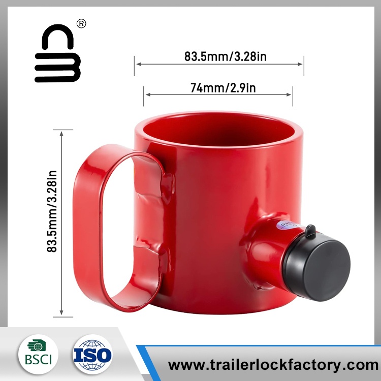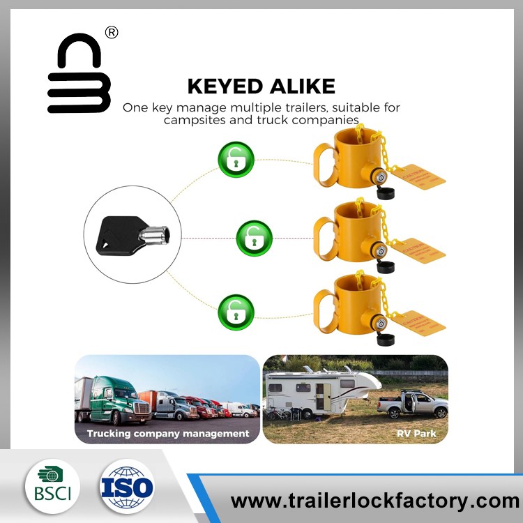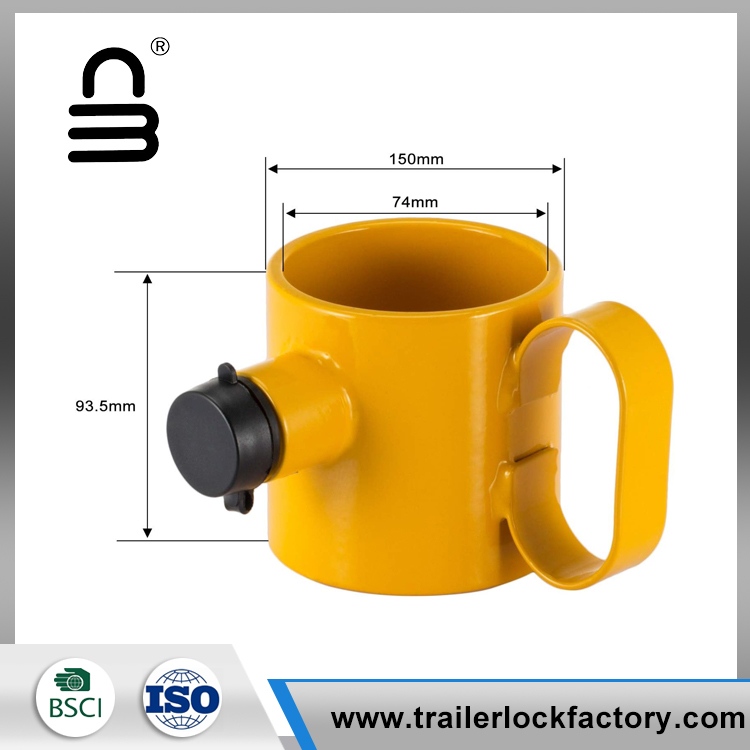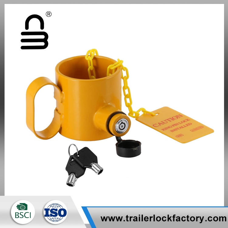 Blocco del rimorchio Il blocco del perno del re di acciaio pesante impedisce il movimento del rimorchio non autorizzato impedendo al perno del king di accoppiarsi con una 5a ruota, interrompe il furto. È fisicamente impossibile per il rimorchio connettersi con una 5a ruota mentre il blocco è impegnato, il blocco in acciaio copre l'intero perno King per la totale sicurezza.
